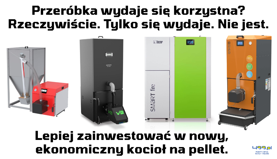 W większości przypadków taka przeróbka choć może się wydawać ciekawą alternatywą do zakupu nowego urządzenia, nie ma sensu. Koszt palnika i montażu bywa znaczący, a komfort i sprawność rzadko dorównują kotłom zaprojektowanym specjalnie pod pellet np. marki Kostrzewa, KIPI lub Lazar. Nowe urządzenia osiągają wysoką sprawność, mają pełną certyfikację i spełniają obowiązujące normy emisyjne. Dodatkowo pracują stabilniej i zużywają mniej paliwa. A jakby tego było jeszcze mało, to posiadają kilkuletnią gwarancję producenta, którą zawsze lepiej mieć, niż nie mieć.