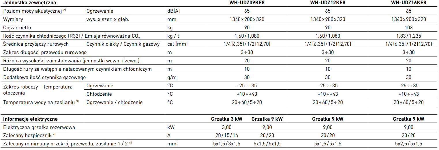Panasonic KIT-ADC09K9E8 jest urządzeniem trójfazowym, zasilanym napięciem 3~400 V / 50 Hz. Taki układ odpowiada instalacjom przewidzianym do stabilnej pracy przy większym obciążeniu. W zestawie przewidziano również grzałkę elektryczną o mocy 9 kW, co uzupełnia możliwości pracy, gdy instalacja wymaga dodatkowego wsparcia.