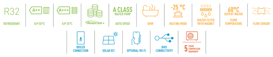 Panasonic KIT-ADC09K9E8 obsługuje trzy podstawowe tryby pracy: grzanie, chłodzenie oraz przygotowanie ciepłej wody użytkowej. Jednostrefowa konfiguracja dobrze pasuje do instalacji z ogrzewaniem podłogowym, a po rozbudowie automatyki Panasonic KIT-ADC09K9E8 może pracować także w bardziej złożonych układach mieszanych. Maksymalna temperatura zasilania do 60°C zwiększa swobodę przy doborze odbiorników ciepła.