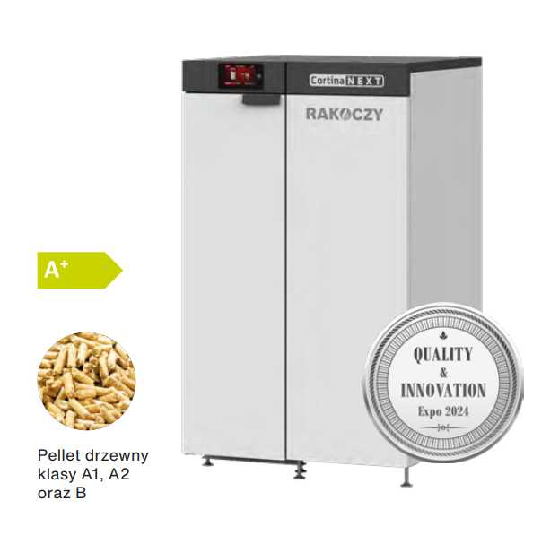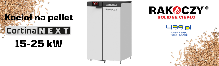 Cortina Next to kocioł na pellet drzewny przeznaczony do spalania pelletu klasy A1. Opcjonalnie może pracować także na pellecie A2 i B. Urządzenie grzewcze marki Rakoczy dostępne jest w zakresie mocy 15–25 kW. Dużą zaletą tego modelu jest kompaktowa budowa połączona z wbudowaną instalacją hydrauliczną. Taki układ ułatwia montaż i pozwala lepiej wykorzystać miejsce w kotłowni. Wszystkie dostępne moce osiągają emisję pyłów poniżej 20 mg/m³, co według katalogu kwalifikuje ten model do wyższego poziomu dofinansowania w programie Czyste Powietrze.