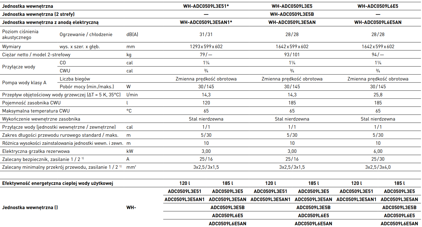 - jednostka wewnętrzna WH-ADC0509L3E5B
