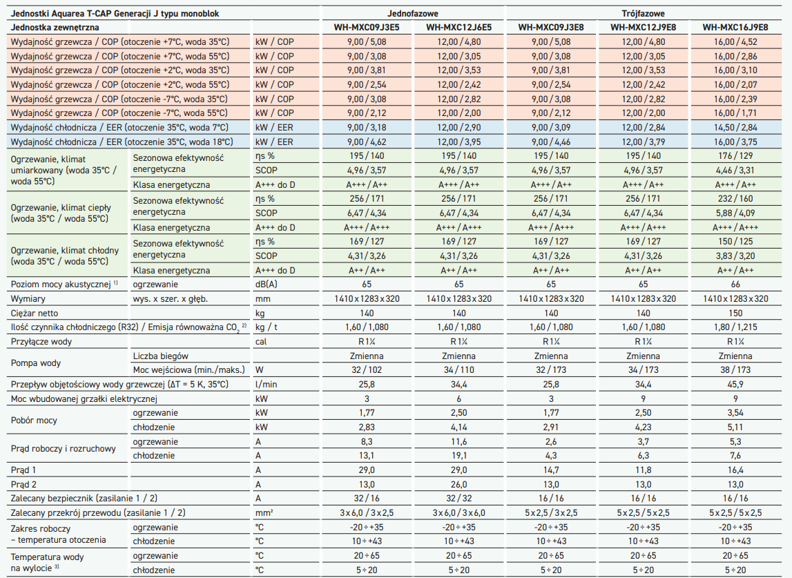 Pompa ciepła Panasonic monoblock T-CAP 12kW 3~ WH-MXC12J9E8 [R32] Seria J