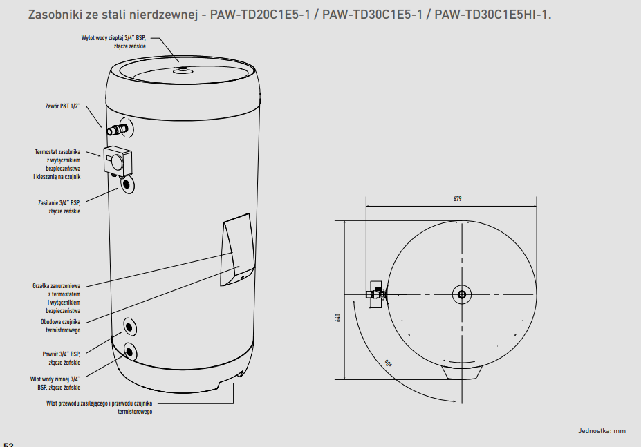 Zbiornik ze stali nierdzewnej 200l - PAW-TD20C1E5-1 PANASONIC